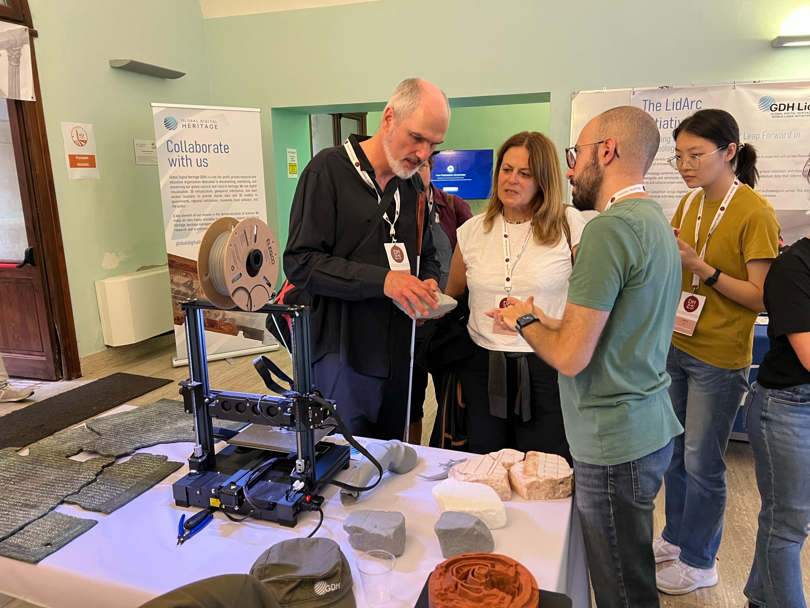 At our booth, we welcomed more than 300 visitors who came to learn about our mission and projects. Attendees explored our freely accessible online collection of over 10,000 3D objects, tested our immersive metaverse experiences, and got a first look at LidArc, our ambitious five–year project to expand the use of aerial LiDAR in archaeology worldwide. A highlight for many was the chance to see and touch a brand–new 3D printed artifact from our collections unveiled each day of the congress.
