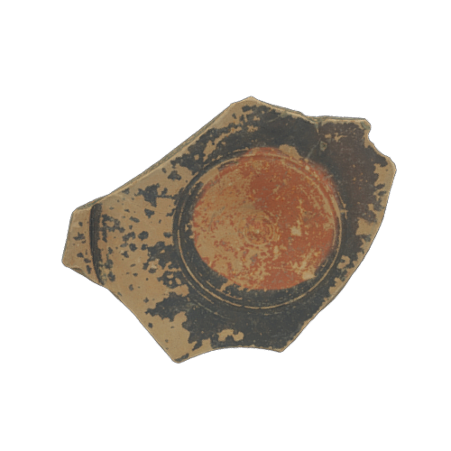 Bucchero fragmentary footed plate, Molinello