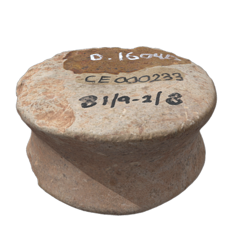 3D model made with 63 images in Reality Capture with additional processing completed in Geomagic Wrap, InstantMeshes, and Blender.