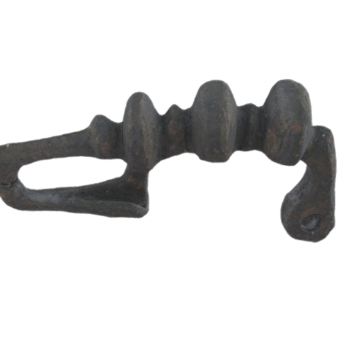 “Clay spindle whorl from the site of Alarcos, Ciudad Real, Castilla-La Mancha, Spain. Iron Age. In the collection of the Ciudad Real Museum.