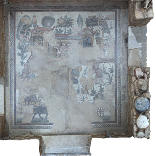 The data for this project were originally collected as a joint effort between the University of Catania and CVAST at the University of South Florida (USF), with the collaboration of the Fondazione Bruno Kessler (FBK). Dr. Mariarita Sgarlata and Dr. Herbert Maschner, Principal Investigators. We gratefully acknowledge the participation of the administrators of the Villa Romana del Casale and the Museo Archeologico di Aidone. The data have been transferred to Global Digital Heritage (GDH) for processing and analysis. Funding for this project, both at USF and at GDH, has been provided by the Hitz Foundation, Herbert Maschner, Principal Investigator.