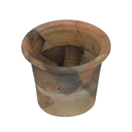 Iberian ceramic container with stamped and painted decoration from the archaeological site of Alarcos (Santuary), Ciudad Real, Castilla-La Mancha, Spain. Iron Age (4th-3rd Centuries BCE). In the collection of the Ciudad Real Museum.