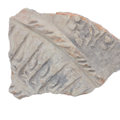 Fragment of painted Iberian pottery decorated with triangular-shaped stamps (zoomorphic pattern) from the archaeological site of Cerro de las Cabezas, Valdepeñas, Castilla-La Mancha, Spain. Iron Age (4th-3rd centuries BC). In the collection of the Valdepeñas Museum. Catalog number 166-CC95-T1E1. 3D model made in Reality Capture using 381 images. Additional processing completed in Geomagic Wrap, Zbrush, and Blender.