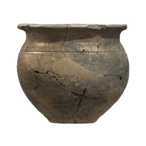 Ceramic jug with dry rope decoration from the archaeological site of Alarcos, Ciudad Real, Castilla-La Mancha, Spain. Middle Ages (Islamic). In the collection of the Ciudad Real Museum.