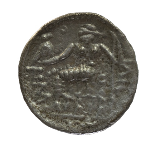 **Description:** Pre-Islamic Silver Coin dating back to the 3rd century BCE (Before Common Era) from the archaeological site of Mleiha, Sharjah, UAE. The coin, that was found in a pottery jar along with other 408 silver coins, was inspired by the coins of Alexander the Great and his Seleucid dynasty successors. In the collection of SAA. Catalog number SAA331N.