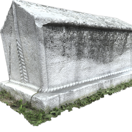 Small, most likely child’s, gabled roof stećak at the site of Kopošići near Ilijaš, central Bosnia. It is richly decorated with motives like spirals and borders. It probably belonged to a child of higher social status. End of XIV and beginning od XV century.
