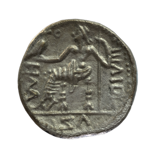 Fragment of a wine amphora from Rhodes with a stamp that names the eponym Agemachos and the month Dalios. Agemachos can be quite accurately dated to ca. 181 – 179 BCE. An eponym was a yearly elected official, hence his name is preceded by the Greek preposition epi, meaning ‘under the term of’. The second handle of the amphora would have had the stamp of the fabricant. The repair holes along some of the breaks show that this amphora was repaired in antiquity, before it was placed as a funerary gift in a tomb. The amphora fragment was discovered in 2014 by the Belgian archaeological expedition in the graveyard area AV-Z at Mleiha, Sharjah.