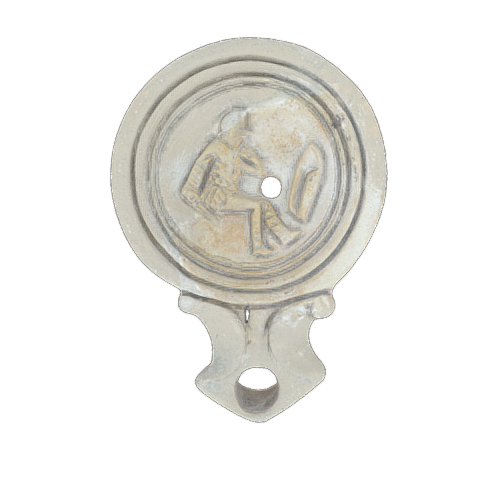 Zoomorphic ointment container from the site of Tarraco (Tarragona, Spain). Zoomorphic ointment container, possibly depicting a turtle. Blown glass with blue spiral trips. From the Tarraco Colonial Forum area.